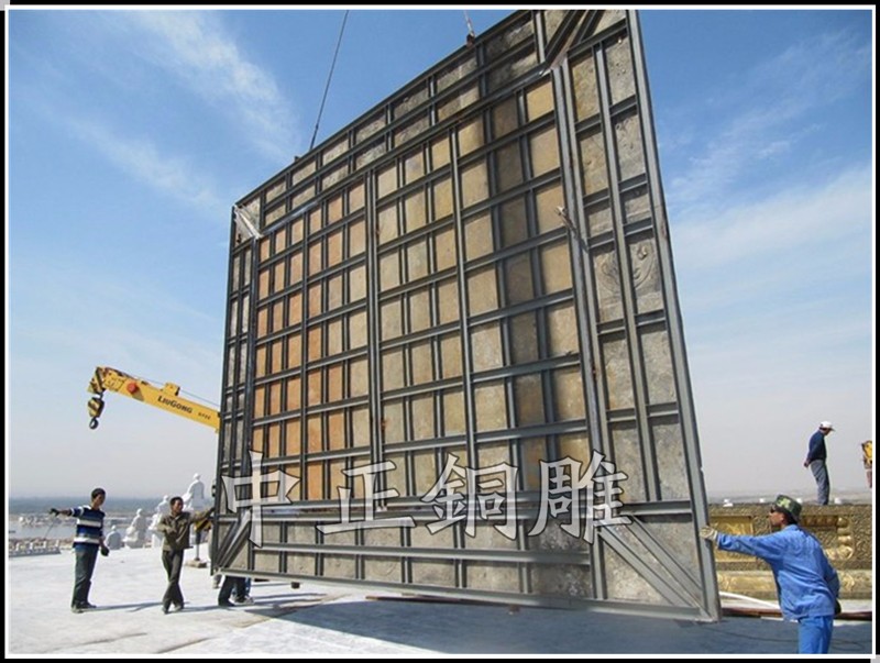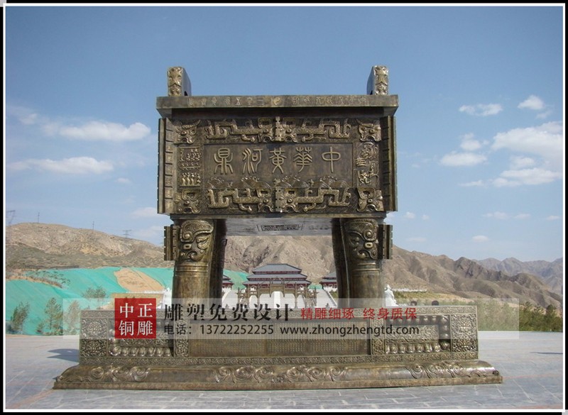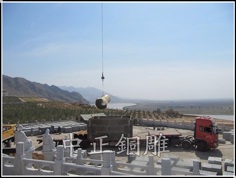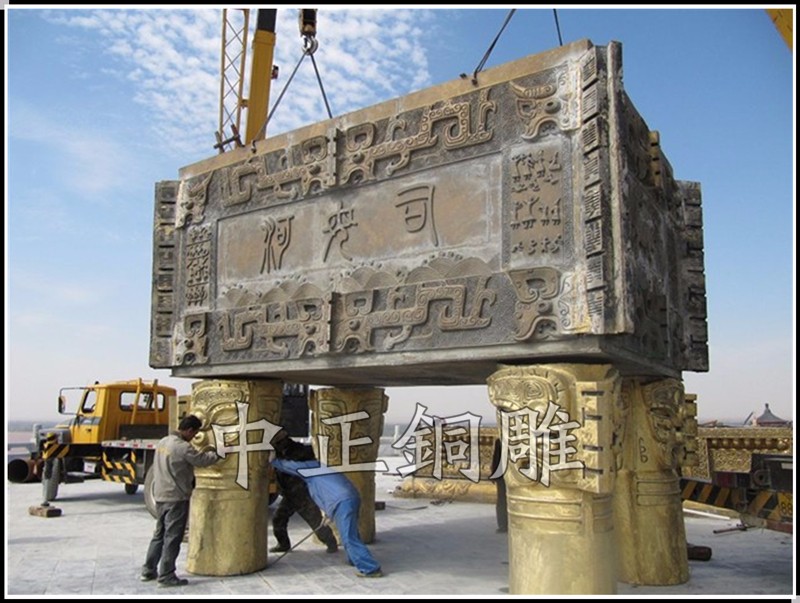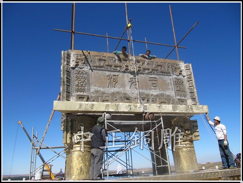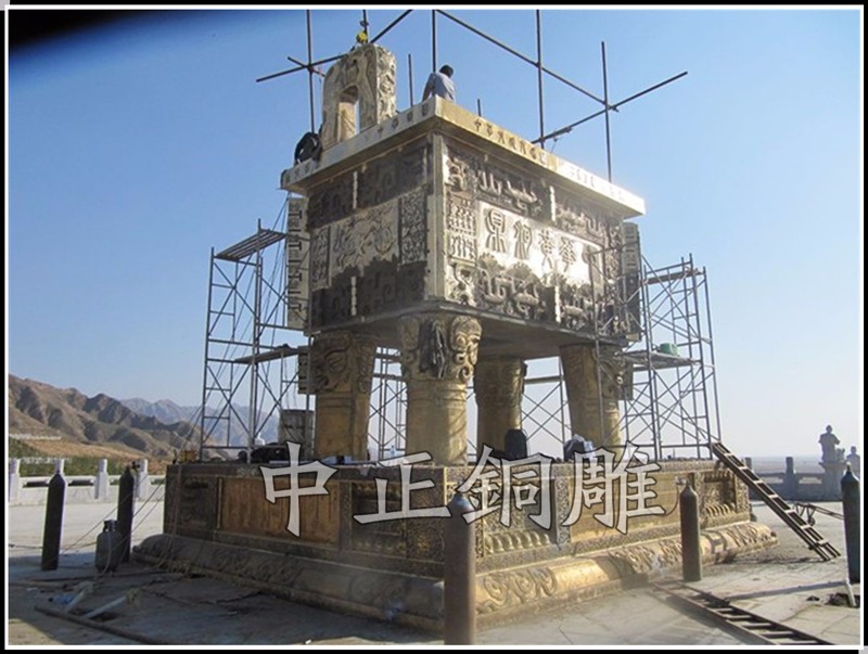 安裝于寧夏回族自治區(qū)青銅峽《中華黃河壇》景區(qū)的中華黃河鼎,銅鼎總高6.3米,采用黃銅澆鑄,分塊組裝焊接工藝,紋飾精雕細(xì)琢,大銅鼎氣勢恢宏,總重13800公斤,歷時5個月制作完工。